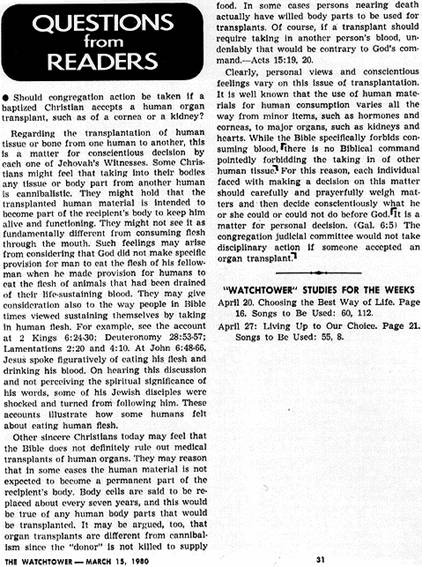 if someone accepted an organ transplant … (3/15/80, p. 31)